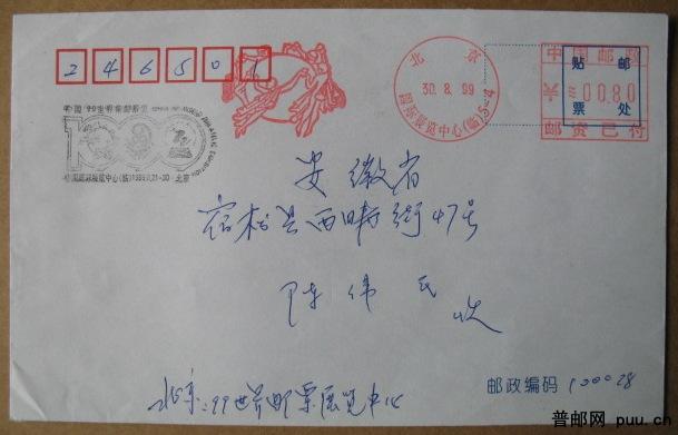 99世界邮展国际展览中心(临)机戳实寄封