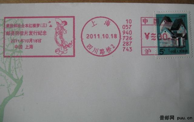 2011年四川路桥支局全本红楼梦邮资明信片发行纪念邮资机戳2枚