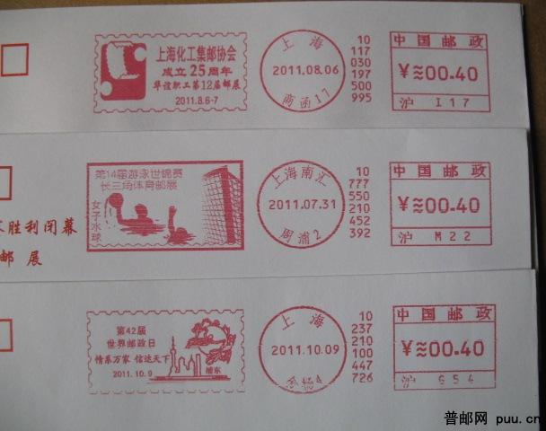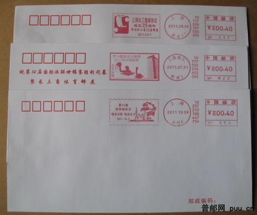 上海化工集邮协会等纪念邮资机戳封3枚