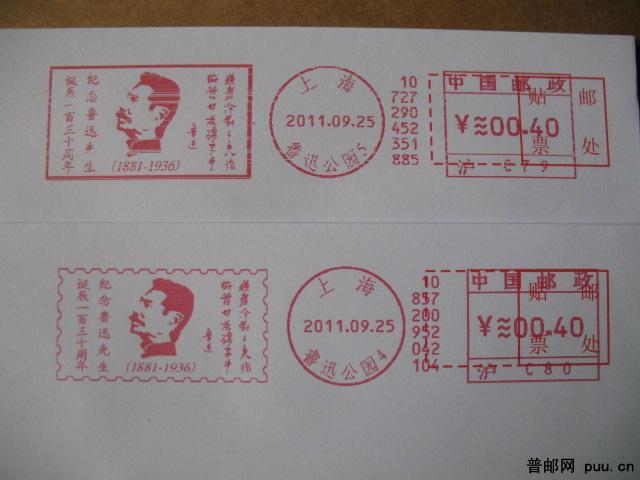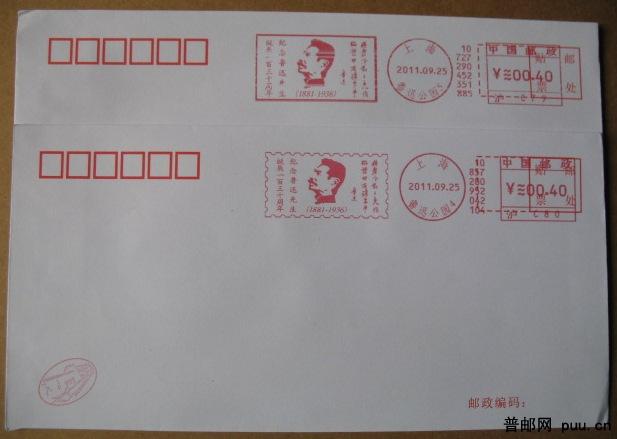 纪念鲁迅先生诞辰一百三十周年纪念邮资机戳封2枚