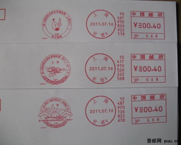 第14届国际泳联世界锦标赛上海2011纪念邮资机戳封7枚