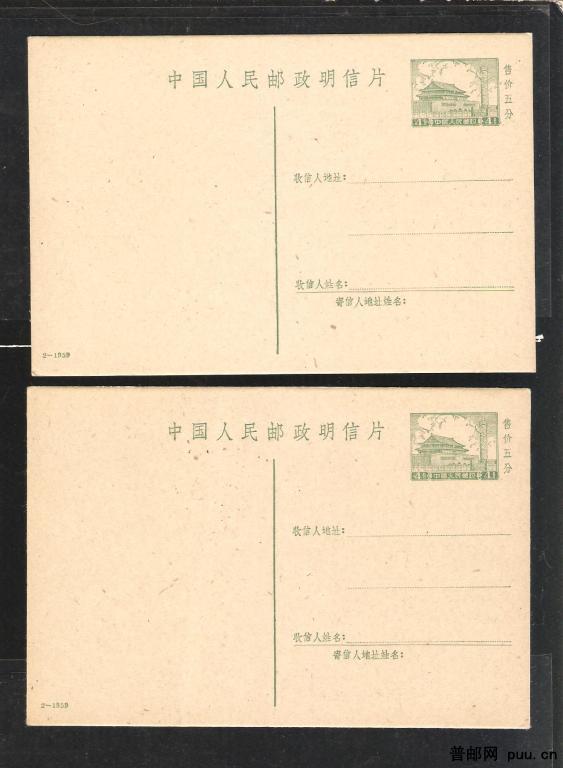 普9邮资片(59-2)新2件
