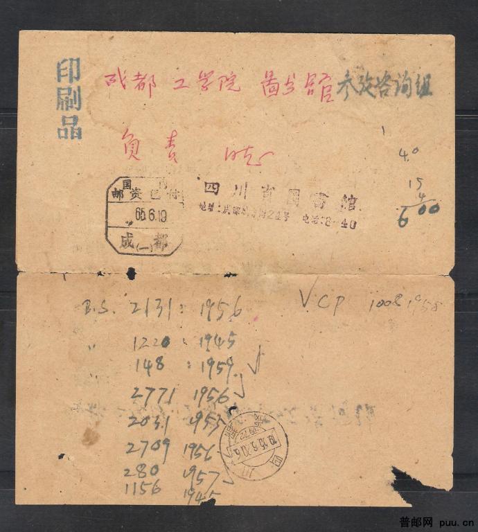 成都本阜印刷品邮资已付