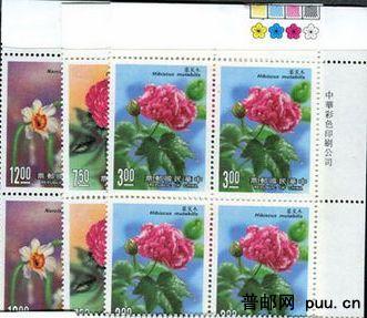 台湾专254 花卉(77年版1-4辑右上色标版名直角大边方联(4套)48全