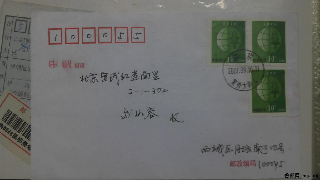 普30-10分实寄封(齿孔移位)