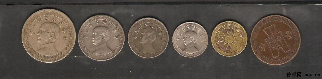 民国硬币1分、2分、5分、10分、20分、半元各一枚