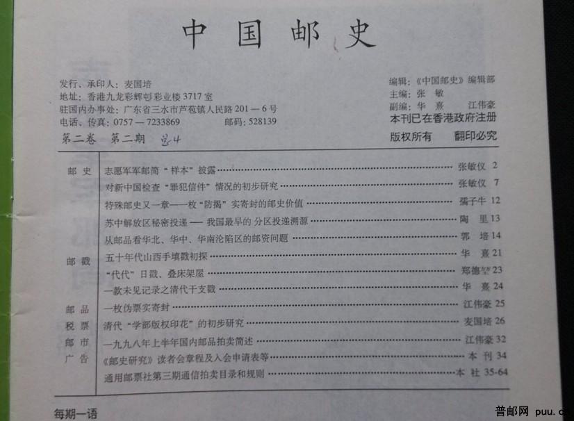 《中国邮史》1998年7月第二卷第二期(总4)一册