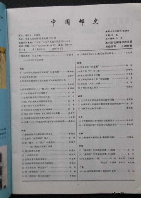 《中国邮史》1999年4月第三卷第二期(总8)一册