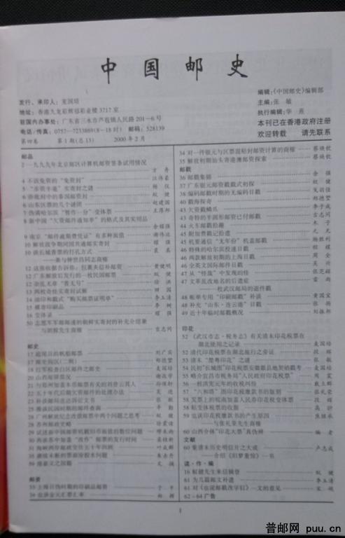 《中国邮史》2000年2月第四卷第一期(总13)一册
