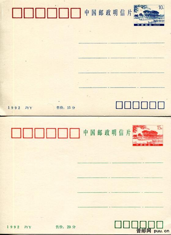 石坊普通邮资明信片 1-1992 JYY 新2全 10套