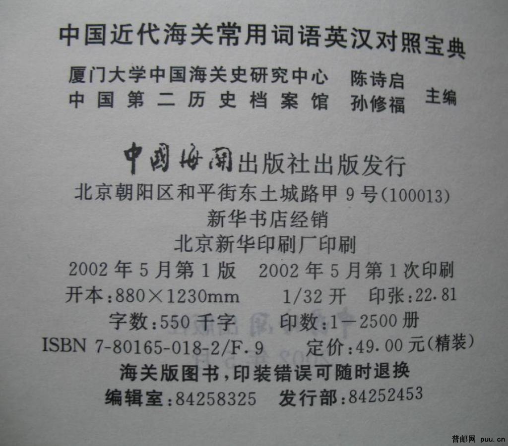 《中国近代海关常用词语英汉对照宝典》精装本一册A