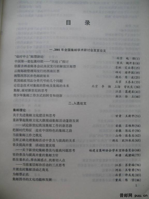 《中国集邮研究文选(2000-2001)》一册B