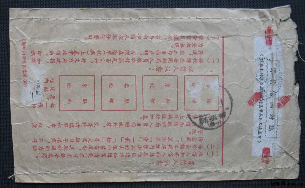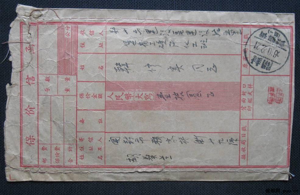 1956年开封寄郑州保价信函实寄封一枚(掉票)