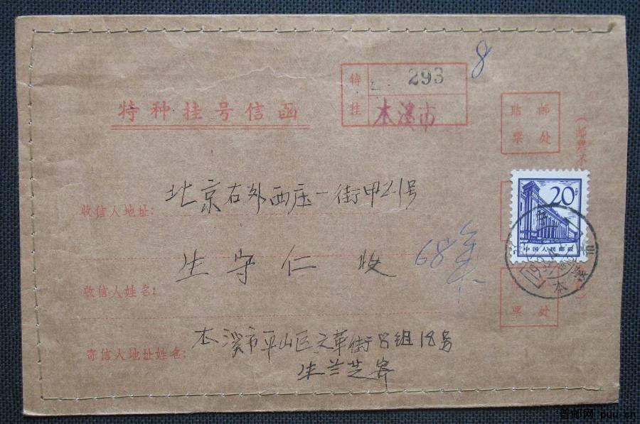 1968年辽宁本溪寄北京特挂实寄封一枚