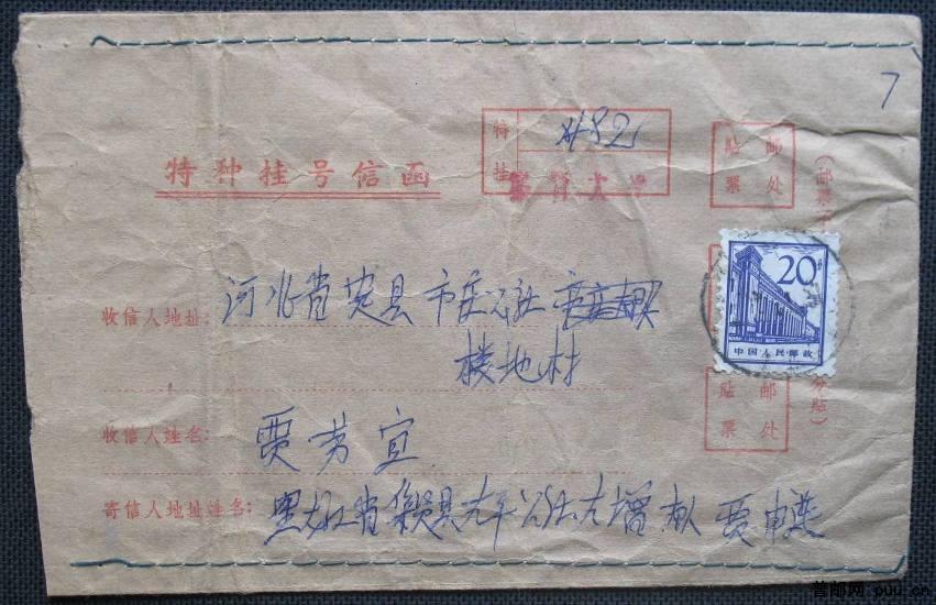 1970年黑龙江集贤县寄河北定县特挂实寄封一枚