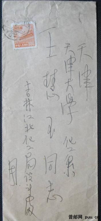 1952年贴普4 800元吉林寄天津平信实寄封一枚