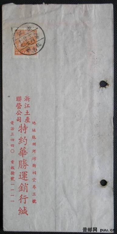 1952年贴普 4 800元浙江杭州寄浙江兰溪实寄封一枚