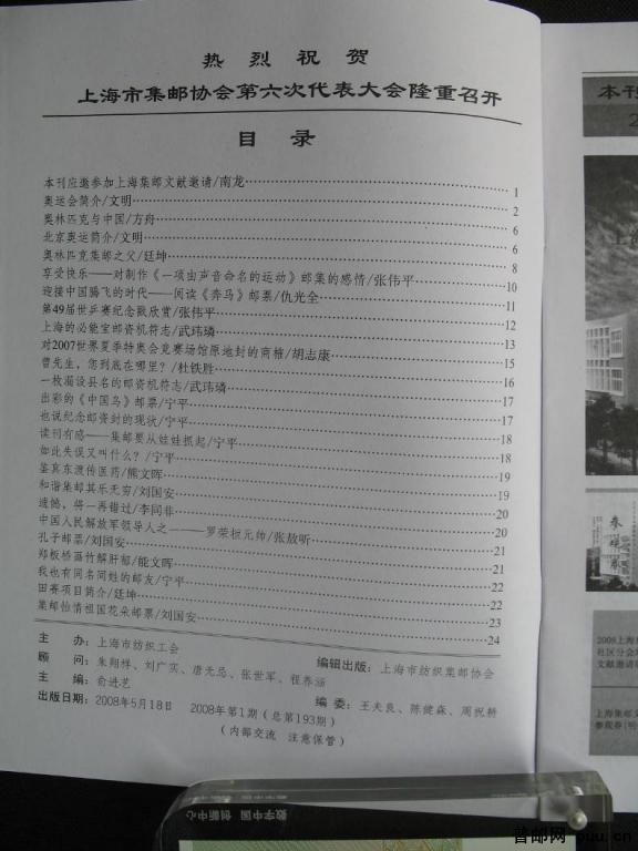 《上海纺织集邮》2008年第一期(总第193期)一册