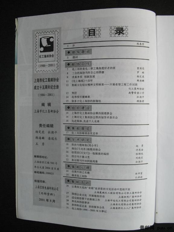 《上海市化工集邮协会十五周年纪念册(1986-2001)》一册
