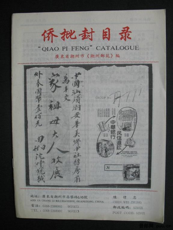 《侨批封目录》一册