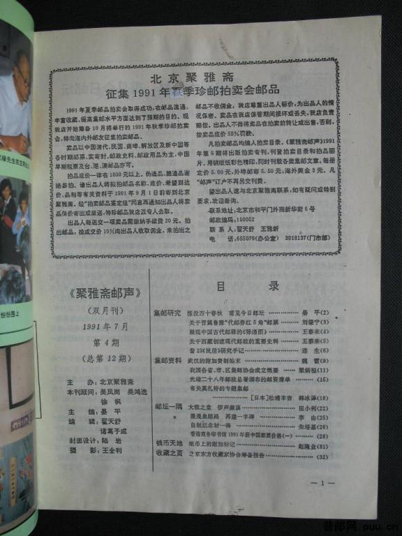 《聚雅斋邮声》1991年第4期(总第12期)一册