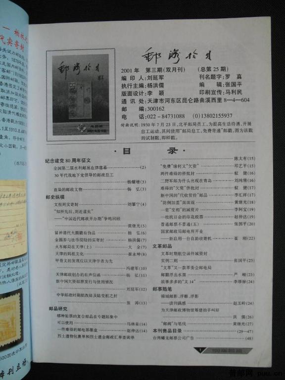 天津著名邮刊《邮海拾贝》2001年第3期(总第25期)一册