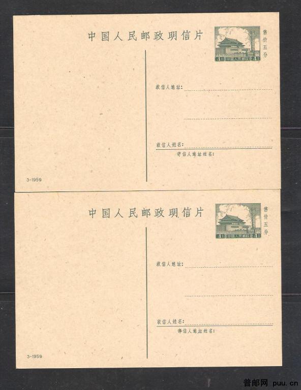 普9邮资片(59-3)两片