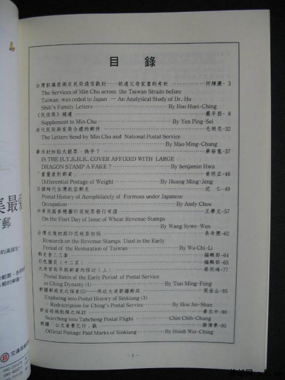 台湾《邮史研究》第十期一册