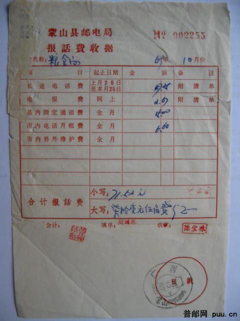 广西壮汉双文字电报报费收据