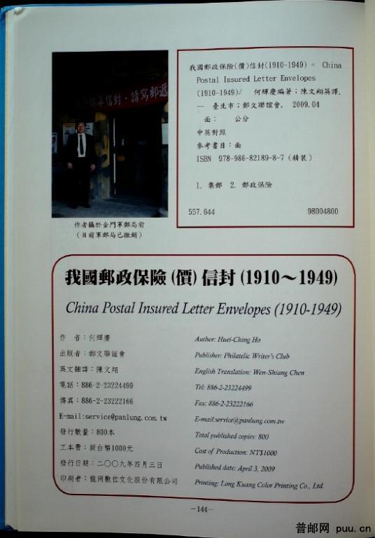 台湾邮文联谊会何辉庆编著《我国邮政保险(价)信封(1910~1949)》一册