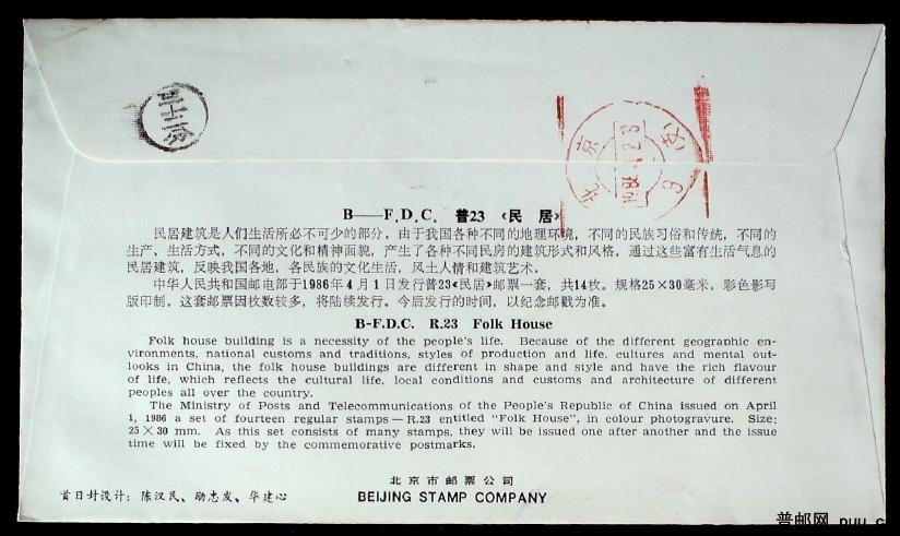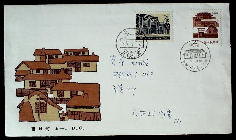 普23 2分东北民居北京公司封首日本埠实寄封(黄帽子开筒戳记)2