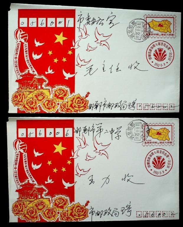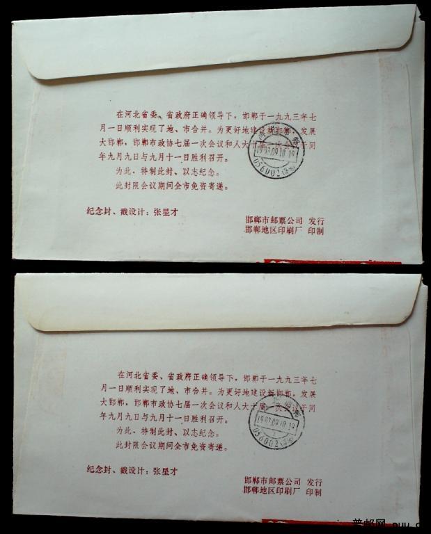 1993年邯郸政协免资封本埠实寄封2件