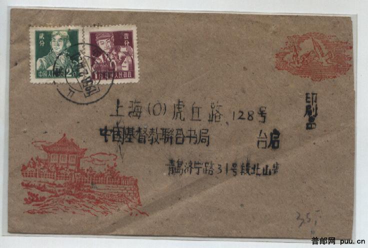 普8-1分、2分合贴印刷品封,普十3分尚未发行