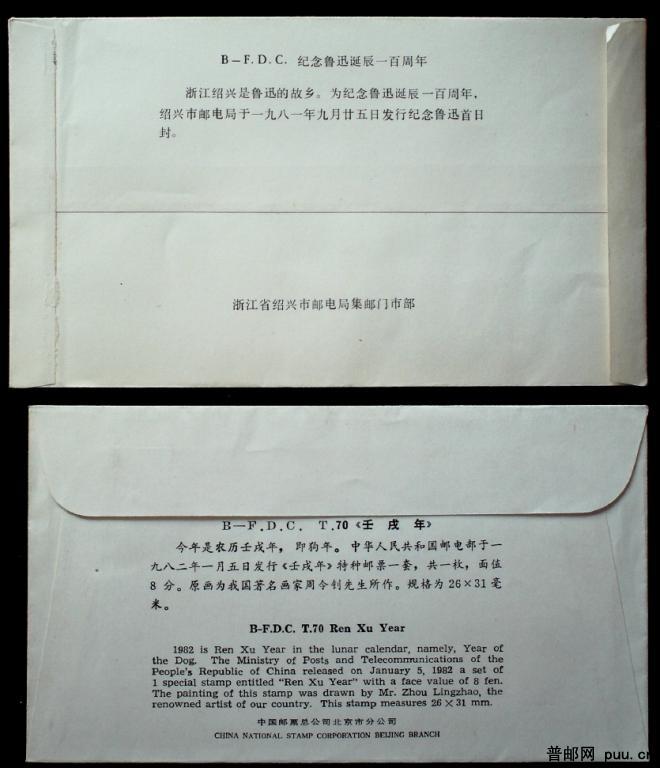 T70壬戊狗年北京公司首日封及J67鲁迅诞辰100周年首日封各一枚