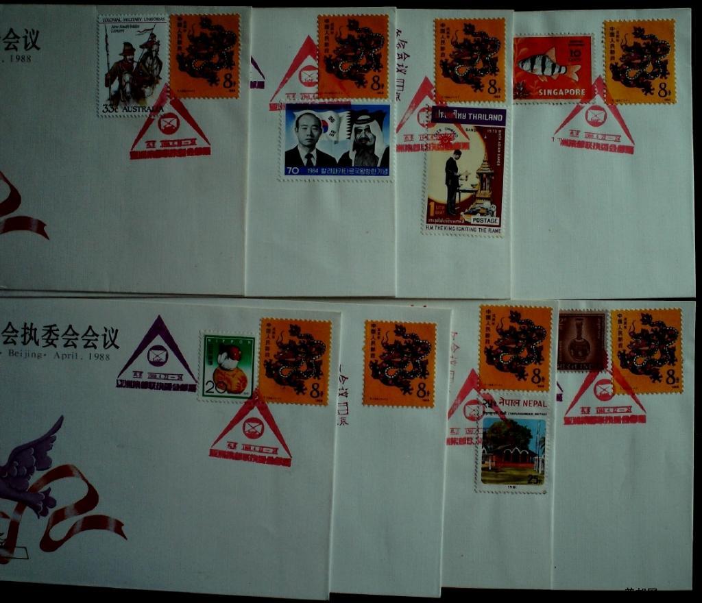 1988年亚洲集邮联合会执委会会议纪念封13枚(加贴成员国邮票)