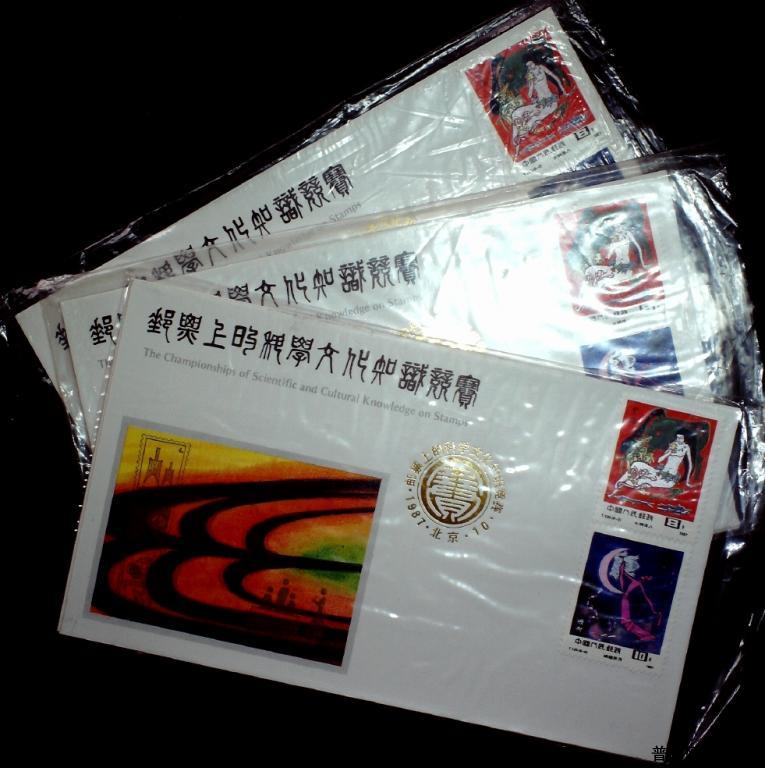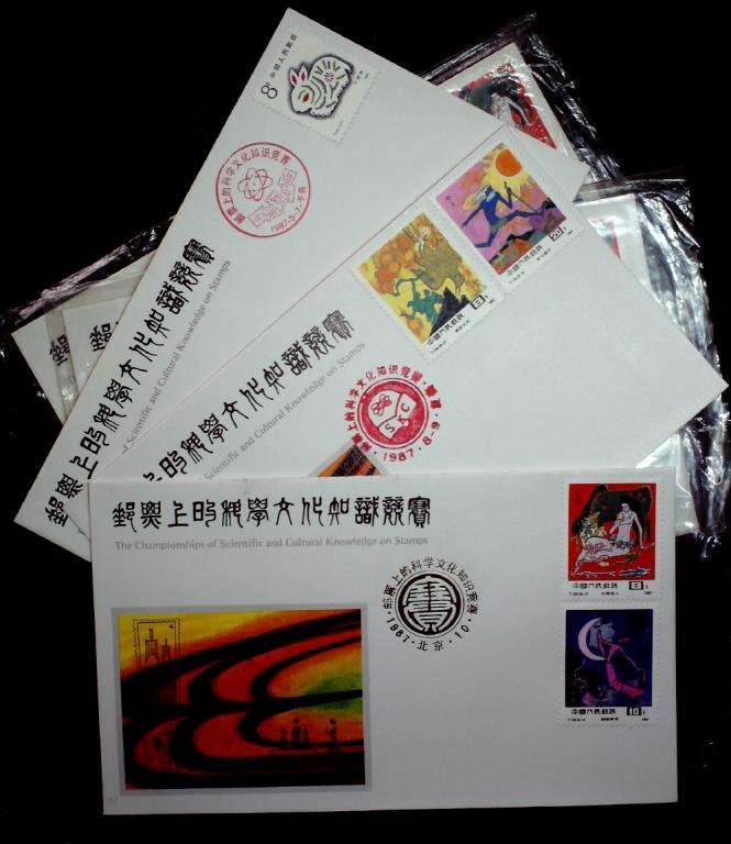 1987年邮票上的科学文化知识竞赛纪念封3套共9枚(贴87年兔年生肖票及神话故事票3枚)