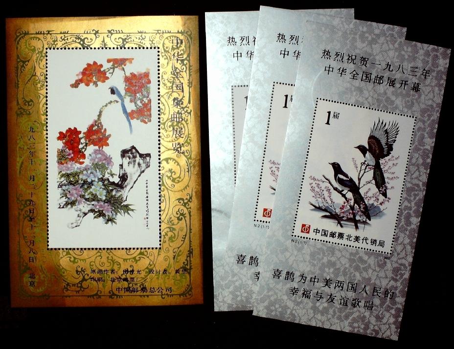 邮票总公司1983年全国邮展纪念张及北美代销局纪念张共4枚