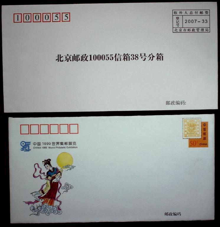 1993年兑奖片3枚及100055收件人邮资总付封等2枚
