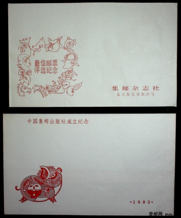 不同年份佳邮评选白封及1983年中国集邮出版社成立纪念封等共5枚