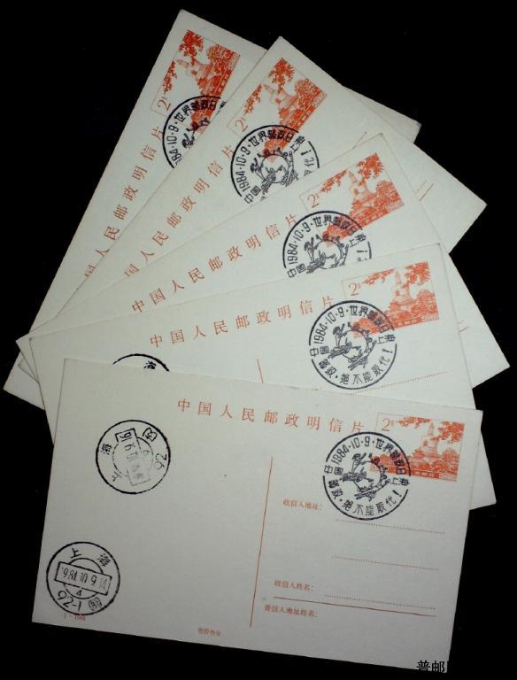 1984年世界邮政日普资片销上海纪念戳及上海日戳片等16枚