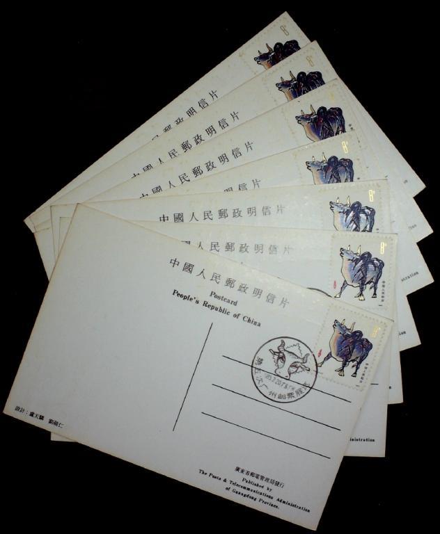 1985年第五次广州邮展贴生肖牛票明信片7枚