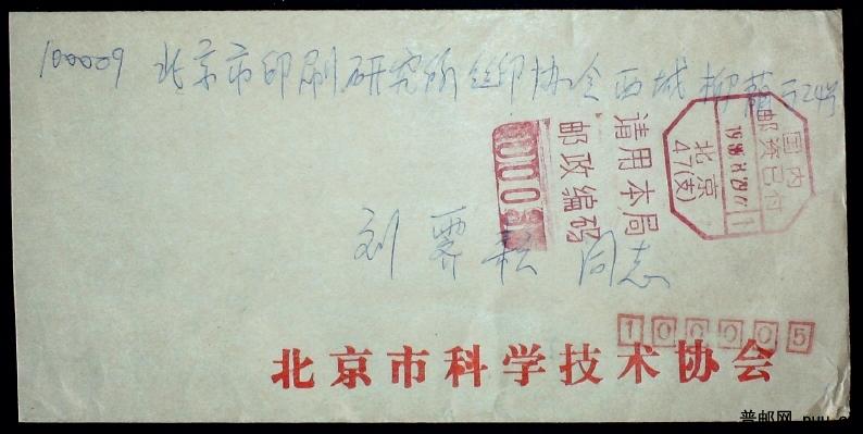 1989年北京47支八角邮资已付戳带宣传语机盖戳实寄封一枚