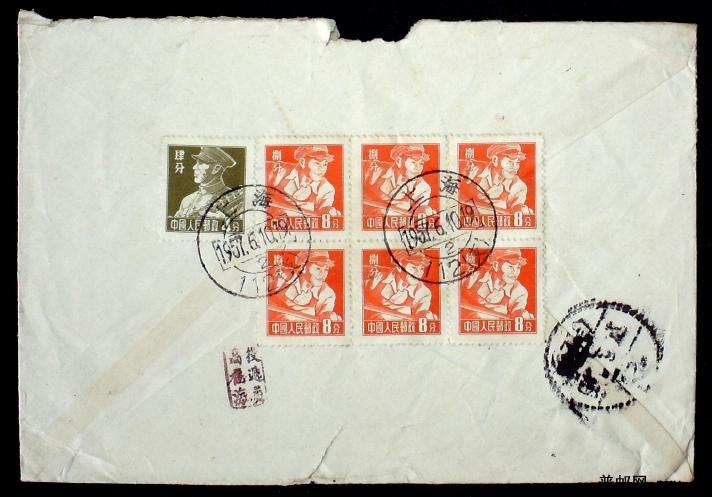 1957年6月上海寄北京超重航空挂号实寄封一枚