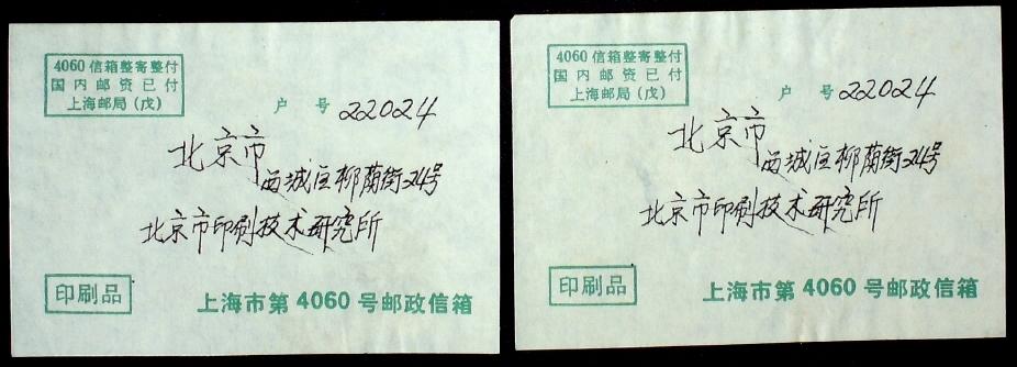 上海邮局印刷品整寄整付封皮两件
