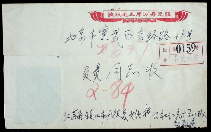 1974年江苏丹徒姚家桥寄北京挂号实寄封一枚