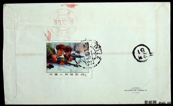 1971年贴编号票严惩入侵之敌票北京本埠实寄封一枚(收信人为著名哲学家张岱年先生)