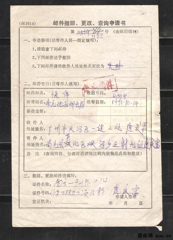 查询申请单之一