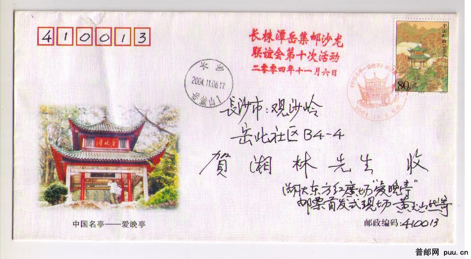 中国名亭爱晚亭首发原地实寄纪念封