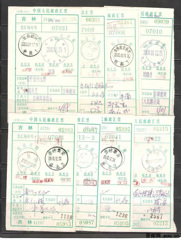 吉林省不同邮戳的邮政汇票8枚
