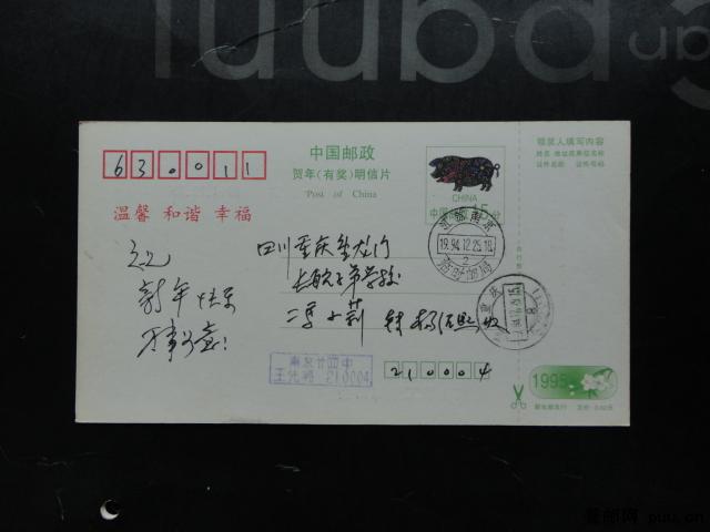 1995年(猪年)贺年(有奖)用信片.首发.临时邮局戳
